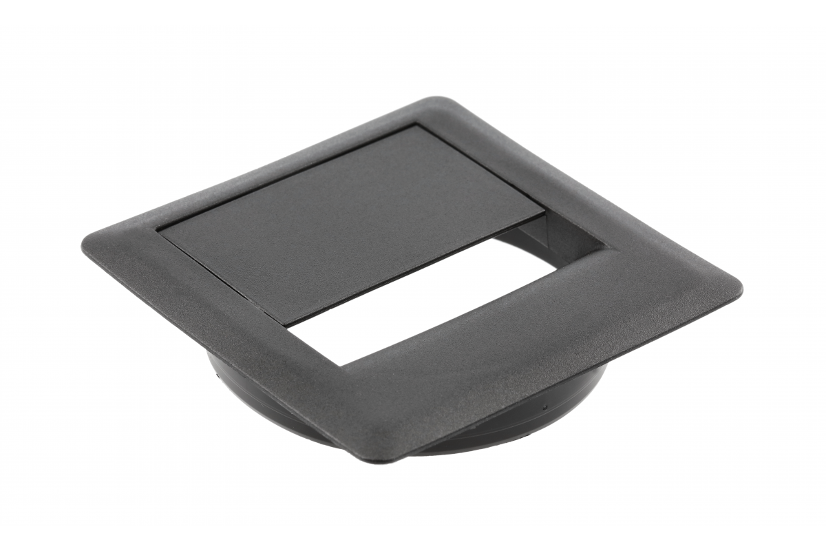 Пропуск для кабеля квадратный - элемент офисного оснащения, устанавливаемый на рабочем столе в специальное отверстие, служащее для пропуска проводов оргтехники. Заглушка придает эстетичный внешний вид поверхности офисного стола.