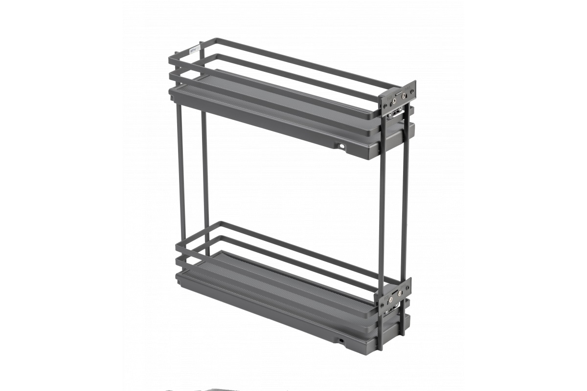 Карго GTV MOVIX Pro с плоским прутом - двухуровневая корзина, преимуществом которой является установка на направляющие скрытого монтажа полного выдвижения с доводчиком. Односторонний монтаж, с возможностью выбора левых либо правых направляющих, предусмотрен для карго шириной 150мм и 200мм. Для карго 300мм, 400мм, 500мм используются направляющие нижнего монтажа.