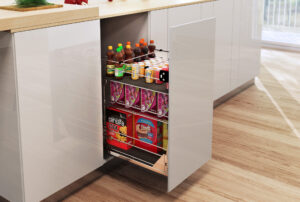 Карго VARIANT MULTI,без направляющих -выдвижная двухуровневая корзина для хранения кухонной утвари. Данная модель представлена двух цветах графит и эффект хром.