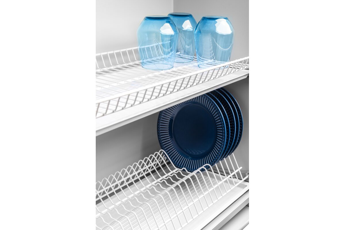 Сушка для посуды GTV BASIC с двумя поддонами и рейлингом – изготовлена из высококачественных материалов, что делает её надёжной и долговечной. Наличие рейлинга позволяет устанавливать сушку без нижнего донышка, что обеспечивает хорошую вентиляцию кухонного шкафчика.
