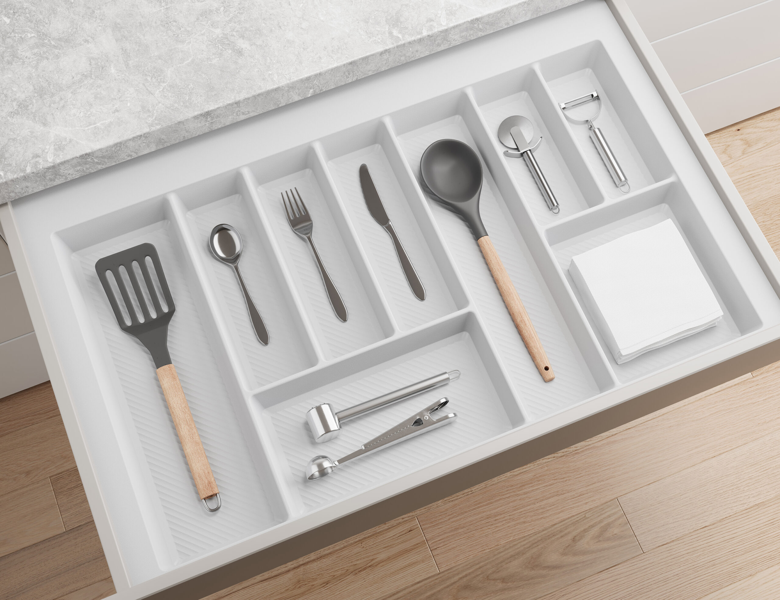 - края вставок могут быть обрезаны самостоятельно по ширине и глубине, что позволяет адаптировать изделие к нестандартным размерам ящиков.