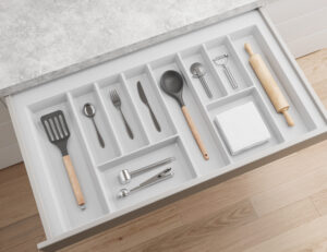- края вставок могут быть обрезаны самостоятельно по ширине и глубине, что позволяет адаптировать изделие к нестандартным размерам ящиков.
