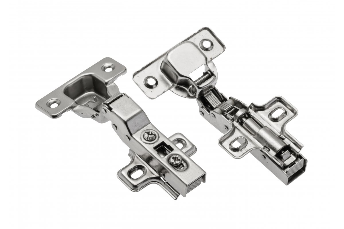 - Система Clip-on обеспечивает быстрый монтаж: корпус петли и ответная планка соединяются и рассоединяются без помощи инструментов, посредством защелкивания.