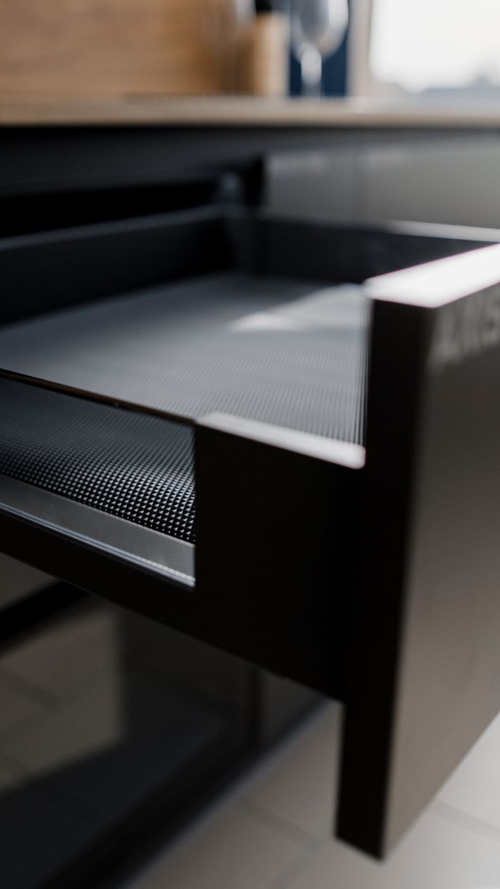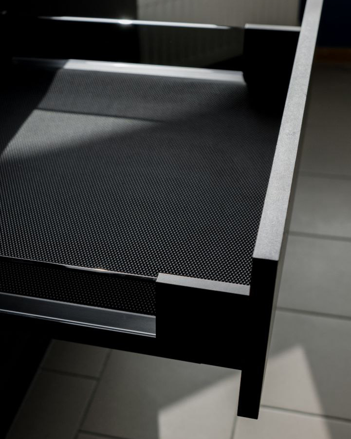 Ящик AXIS PRO GLASS с 3D регулировкой - это единственный ящик, который максимально использует пространство внутри, что обеспечивается тонкой боковиной 13мм и нижним зазором всего в 22мм. Стеклянные боковины ящиков добавляют интерьеру необычную выразительность, конструкция воспринимается как еще более светлая и просторная.
