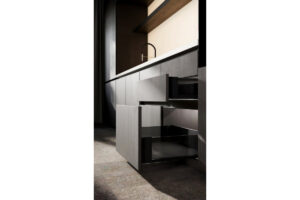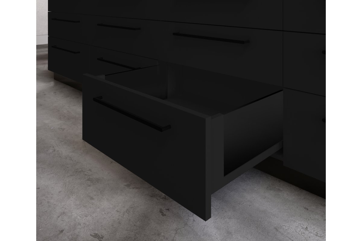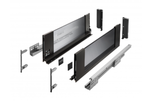 Ящик AXIS PRO GLASS с 3D регулировкой - это единственный ящик, который максимально использует пространство внутри,  что обеспечивается тонкой боковиной 13мм и нижним зазором всего в 22мм. Стеклянные боковины ящиков добавляют интерьеру необычную выразительность, конструкция воспринимается как еще более светлая и просторная.