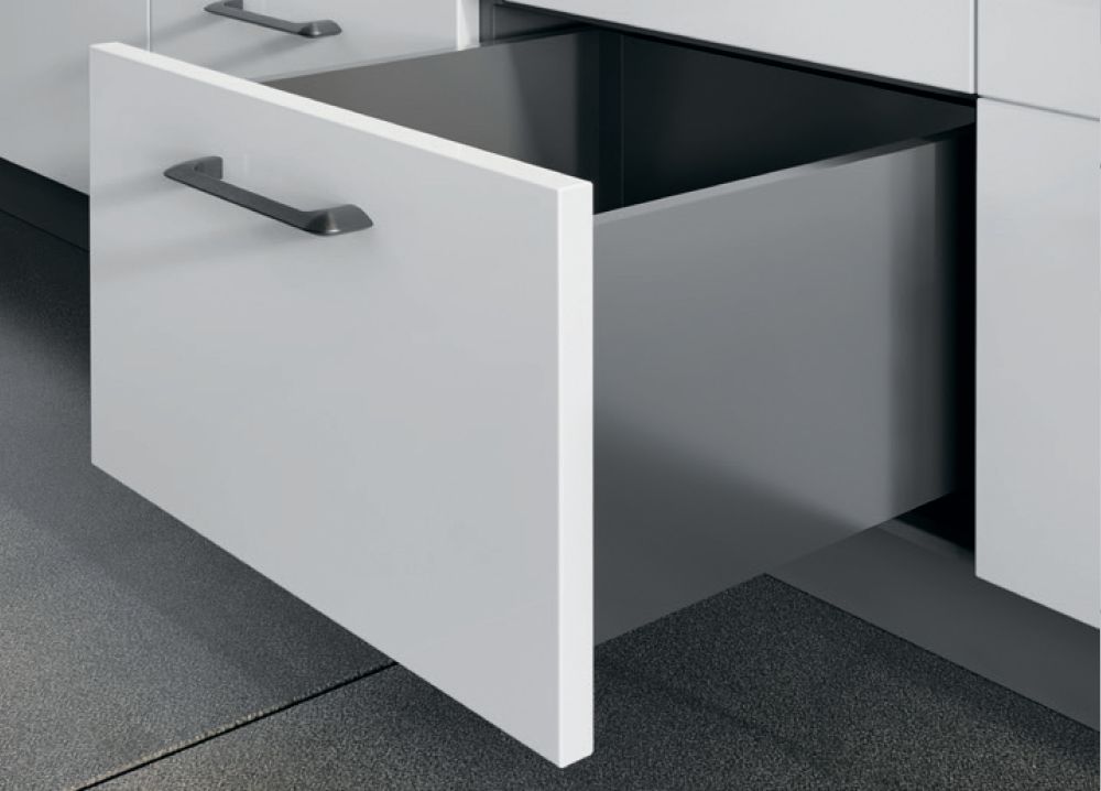 Ящик AXIS PRO с 3D регулировкой - это единственный ящик, который максимально использует пространство внутри. Что обеспечивается тонкой боковиной 13мм и нижним зазором всего в 22мм.
