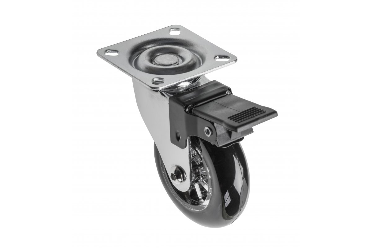 Колесо мебельное на площадке GTV BRAZYLIA со стопором d=75мм, черное