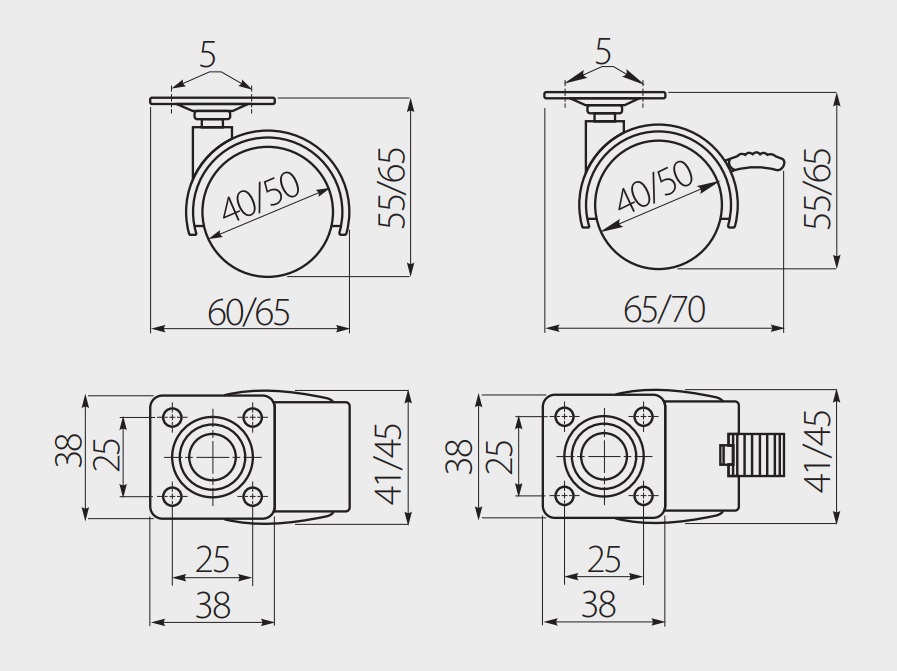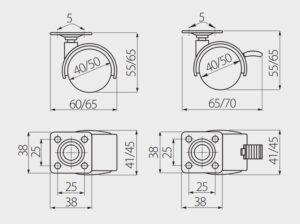 Колесо мебельное KM GTV представлено в двух размерах: 40мм, 50мм. При эксплуатация колеса предотвращают повреждение напольного покрытия.