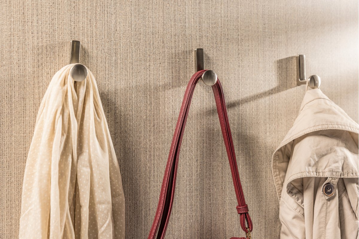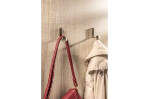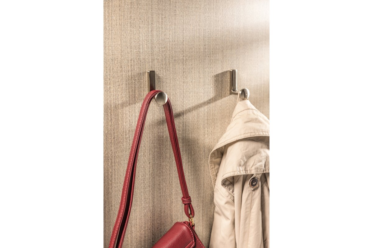 Крючок мебельный ARCO представлен в трех цветах: шлифованное золото, шлифованная сталь, черный матовый.