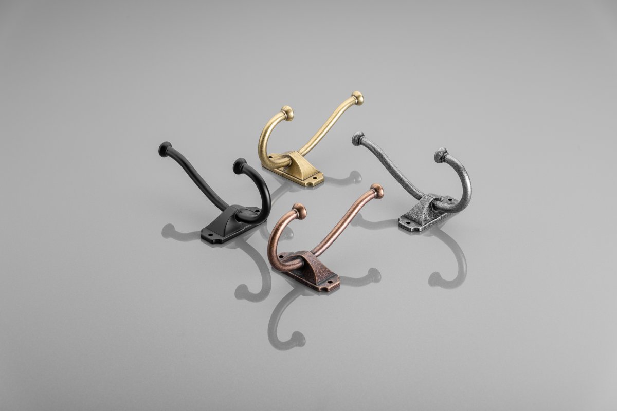 Крючок мебельный CRAFT представлен в четырех цветах: античная латунь, античное серебро, античная медь, черный матовый.