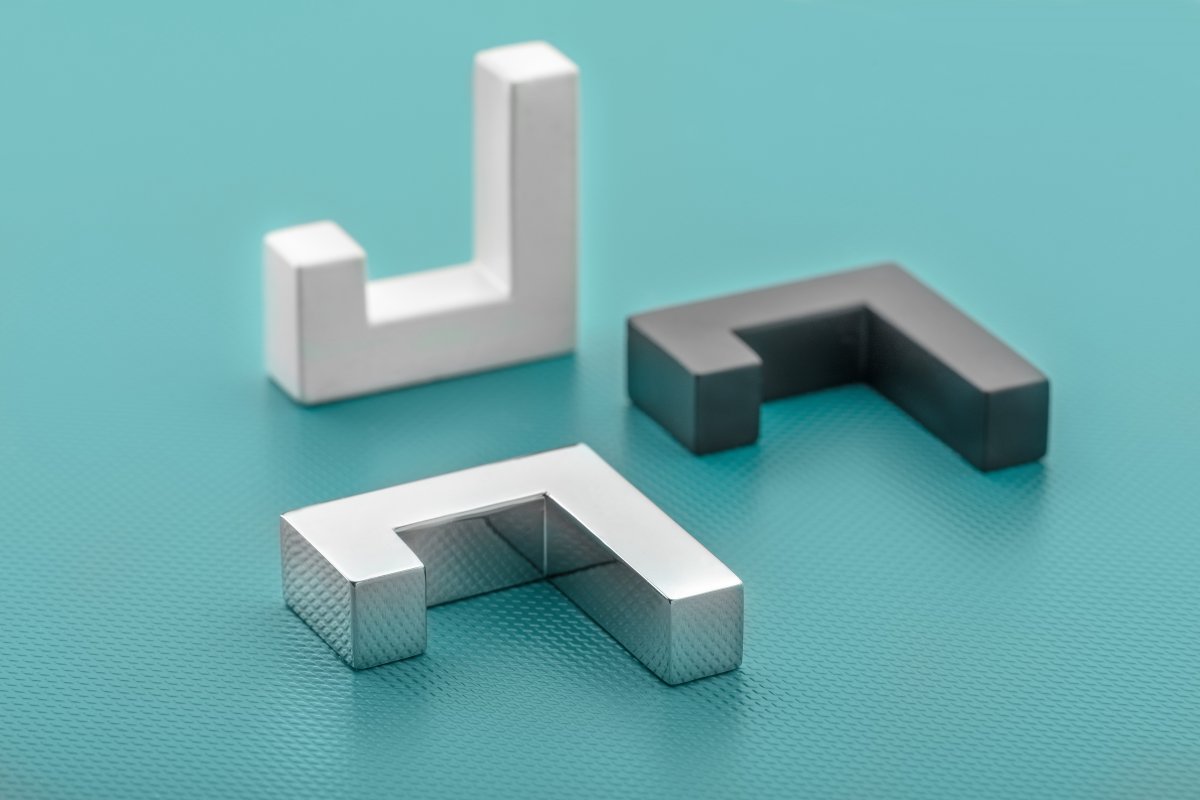 Крючок мебельный К2201 представлен в нескольких цветах: хром, шлифованная сталь, черный .