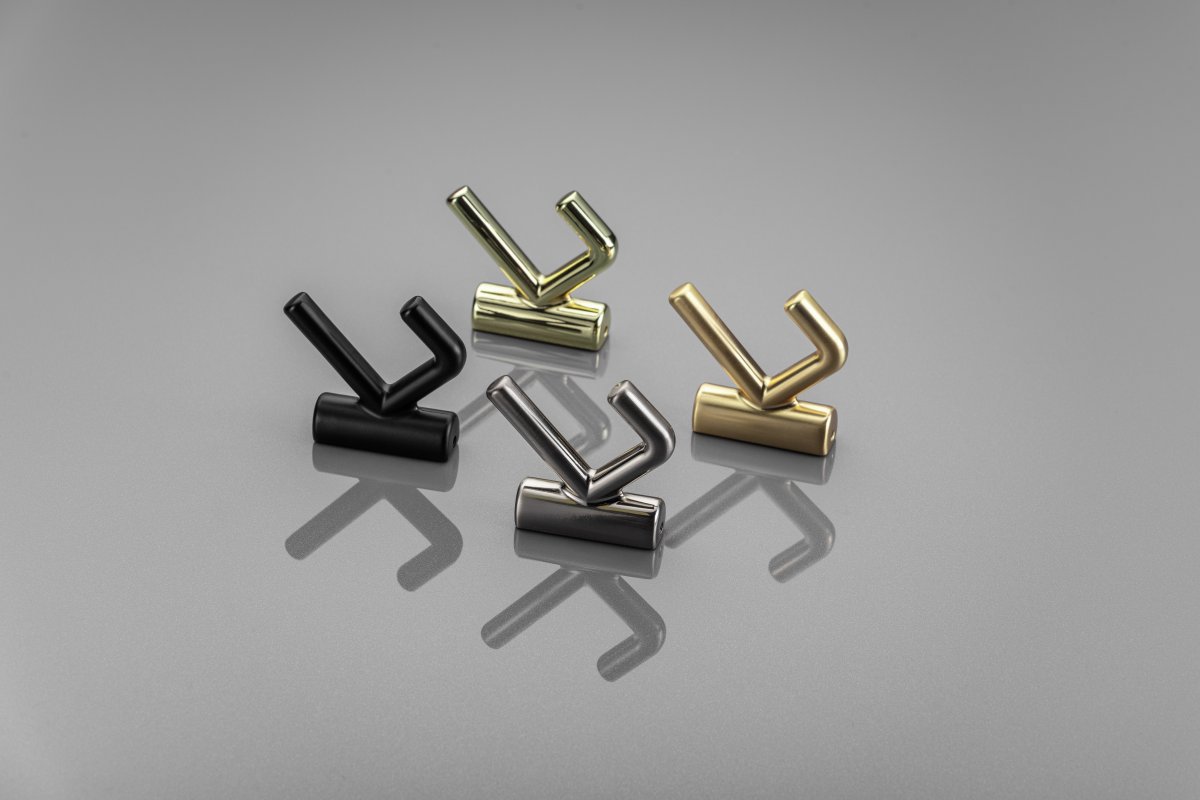 Крючок мебельный LENS представлен в нескольких цветах: шлифованное золото, латунь, шлифованная сталь, черный матовый .