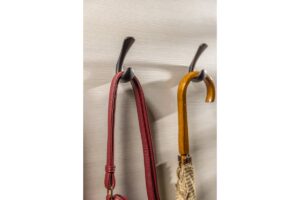 Крючок мебельный ORA представлен в нескольких цветах: шлифованное золото, светлый графит, шлифованная сталь, черный матовый .