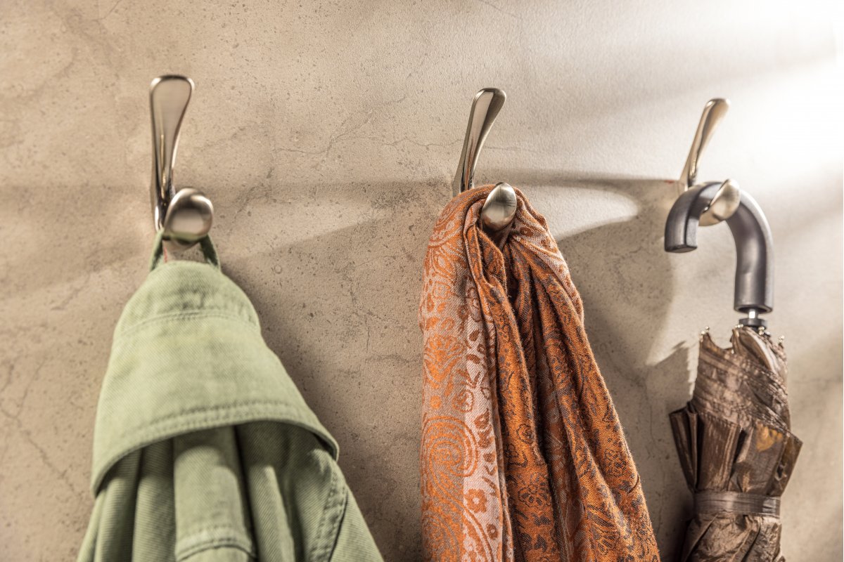 Крючок мебельный ORA представлен в нескольких цветах: шлифованное золото, светлый графит, шлифованная сталь, черный матовый .