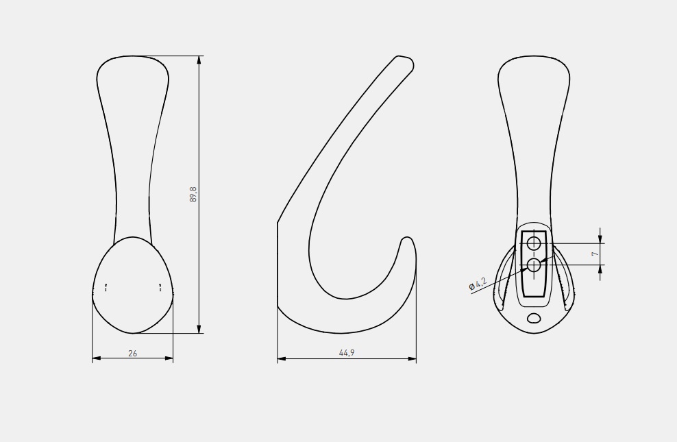 Крючок мебельный ORA представлен в нескольких цветах: шлифованное золото, светлый графит, шлифованная сталь, черный матовый .