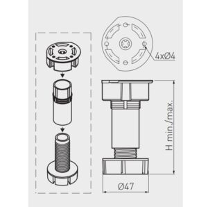 Опора мебельная GTV трехсоставная из черного пластика.