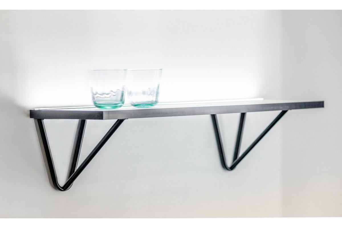 Полкодержатель WIRE - кронштейн для полок, исполненный в стильном черном декоре, являющийся как полезным элементом интерьера, так и своеобразным украшением помещения. При использовании двух полкодержателей WIRE, максимальная нагрузка на полку - до 60 кг (при условии соответствующей прочности самой полки и правильного монтажа).