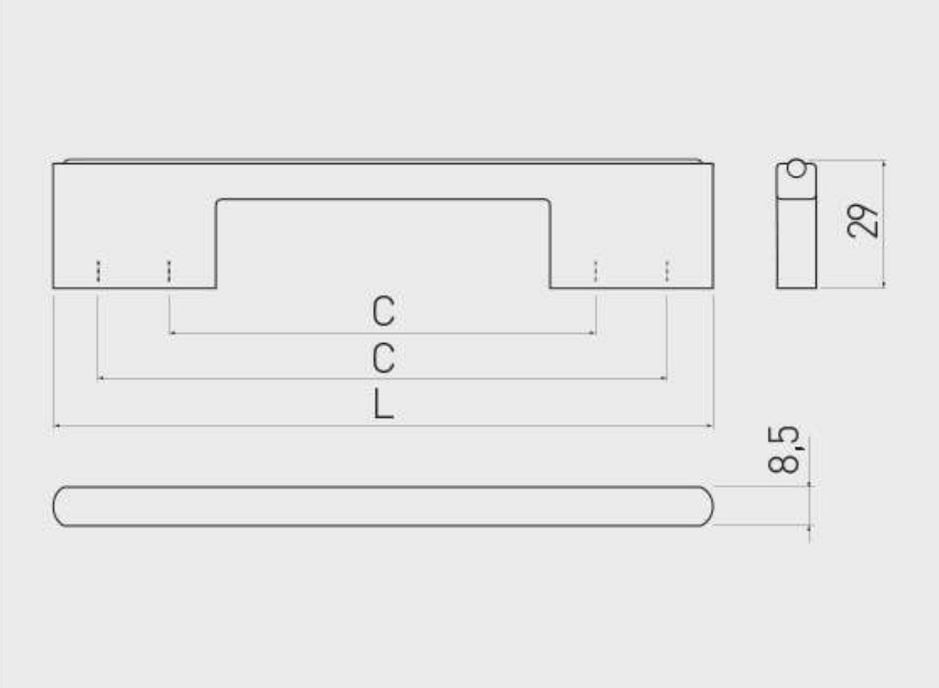 Ручка мебельная ASTI доступна в трех размерах: 96/128 мм, 192/224 мм и 288/320 мм.