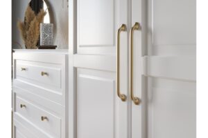 Ручка мебельная FABRICIO доступна в трех цветах: черный матовый, золото шлифованное и латунь.