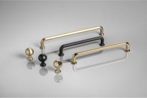 Коллекция ручек NORD доступна в трех цветовых версиях: латунь, шлифованное золото и черный матовый. Доступна в трех размерах: 128мм, 160мм, 192мм.