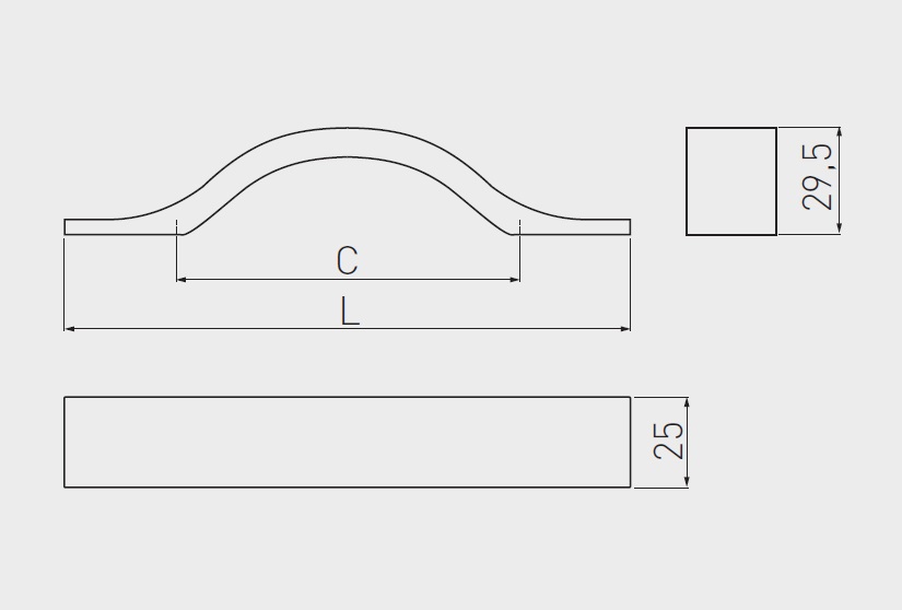 Ручка мебельная UA-319 доступна в цвете алюминий в трех размерах: 128 мм, 160 мм и 192 мм.
