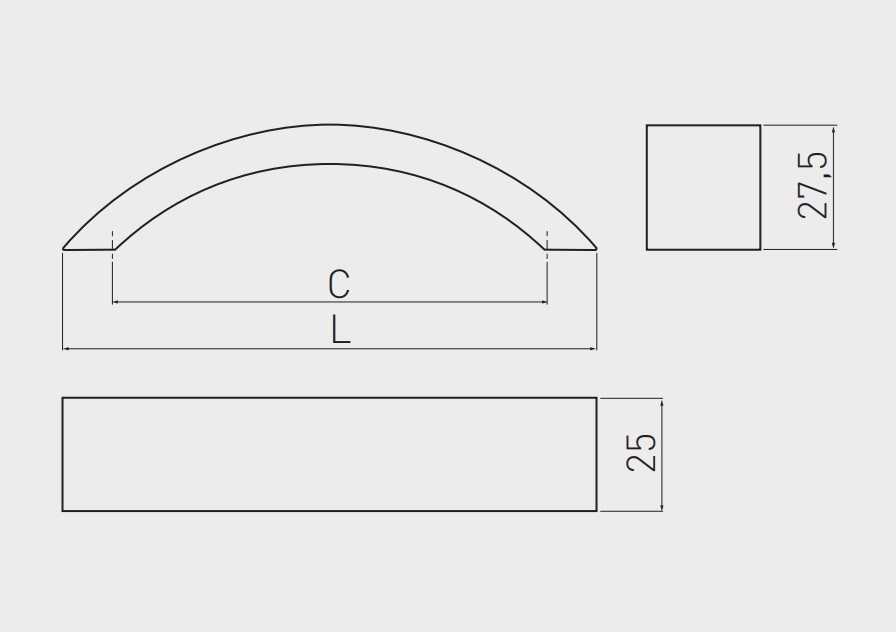 Ручка мебельная UA-338 доступна в цвете алюминий в двух размерах 128мм и 160мм.