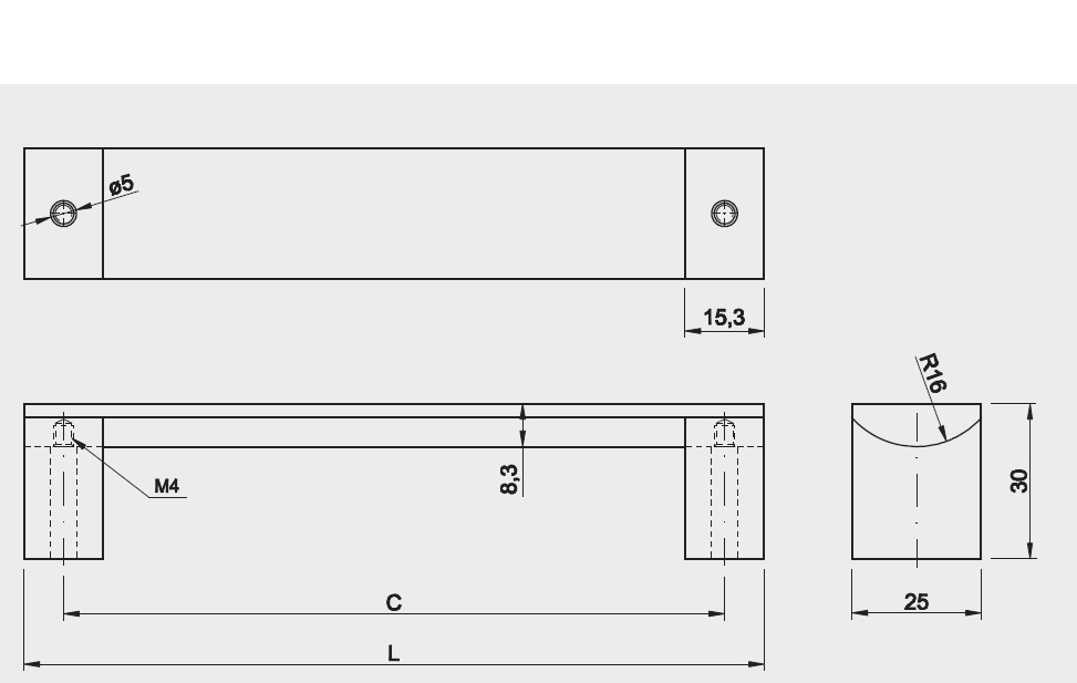 Ручка мебельная UA-B337 L-320мм, алюминий