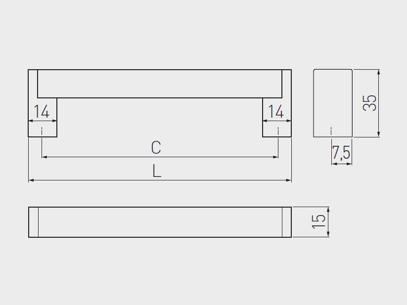 Коллекция ручек UZ-334 доступна в цвете шлифованная сталь в пяти размерах: 128 мм, 160 мм, 192 мм, 256 мм и 320 мм.