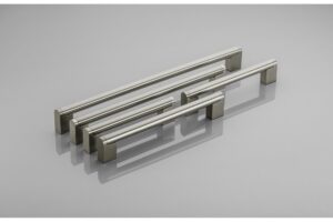 Ручки мебельные UZ-336 доступны в цвете шлифованная сталь в семи размерах: 128 мм, 160 мм, 192 мм, 256 мм, 320 мм, 416 мм, 480 мм.