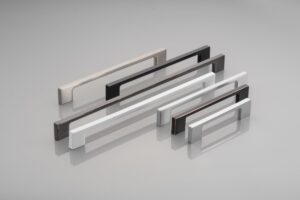 Ручка мебельная UZ-819 представлена в цветах: хром, сатин, алюминий, шлифованная сталь, античное серебро, белый, черный хром, античная медь, черный глянец, черный матовый, медь, золотая латунь.
